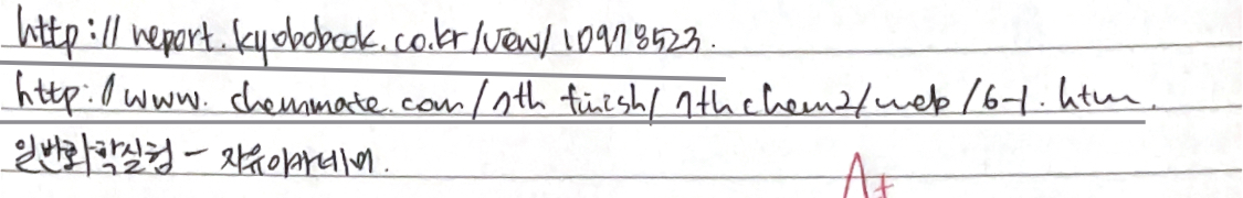 | [실험노트] 일반화학2 실험 5. 물의 경도 측정 실험보고서 (0) | 2022.09.28 |