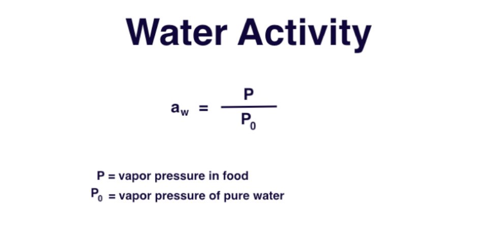 -정의 : 수분활성도는 일정 온도에서 식품이 나타내는 수증기압(P)과 순수한 물의 수중기압(Po)의 비로 나타낸다.