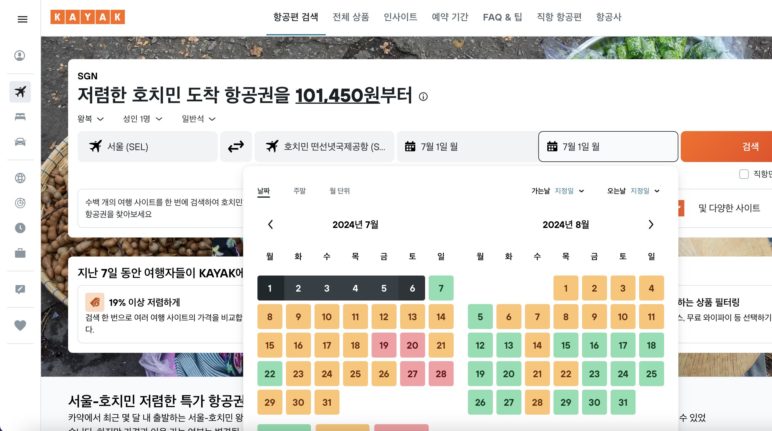 위의 최저가 검색 사이트에서 마음에 드는 항공원을 발견하셨다면,