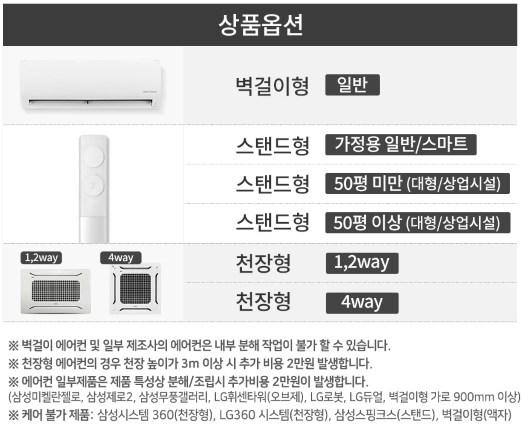 에어컨 청소 비용 같은 경우, 에어컨의 크기, 종류 등에 따라 달라집니다.